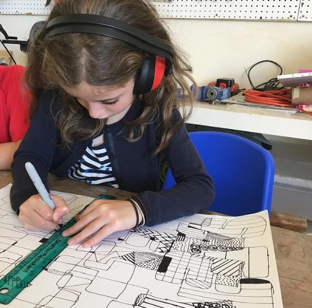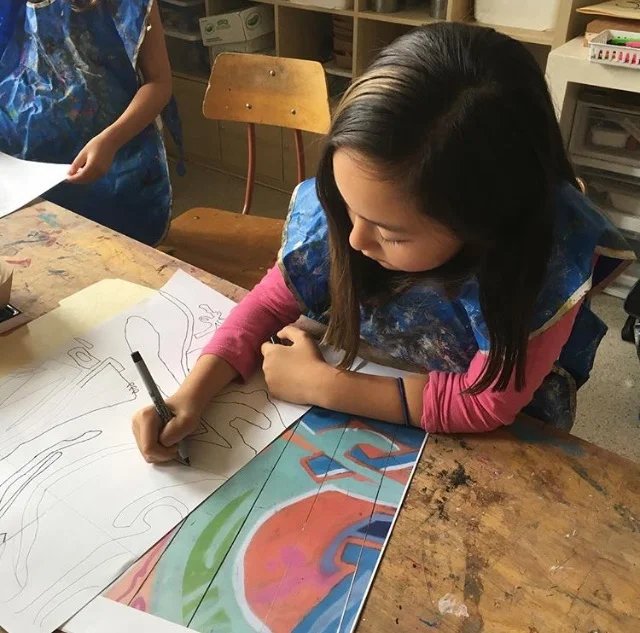What makes a community unique? How is a community shaped by its surroundings? These are questions that have been on the minds of the Third Graders at Alta Vista School. As an alignment to their study of the Bay Area, 3rd grade students were asked to investigate Alta Vista's own neighborhood in the Bay Area: the Portola! During an art class, 3rd grade students discussed the idea of community, and were asked to share their knowledge about the Portola neighborhood. They then went on a mini trip to San Bruno Ave., where they used their artistic eyes to look for everyday items that make the Portola unique. Students selected a scene or object to take a picture of, used the image as a reference for a large-scale drawing. Students used the grid method to map out their drawing and pay attention achieving the correct scale and proportion. They added value with pencil and Sharpie marker before going on to coloring their drawing with chalk pastels.