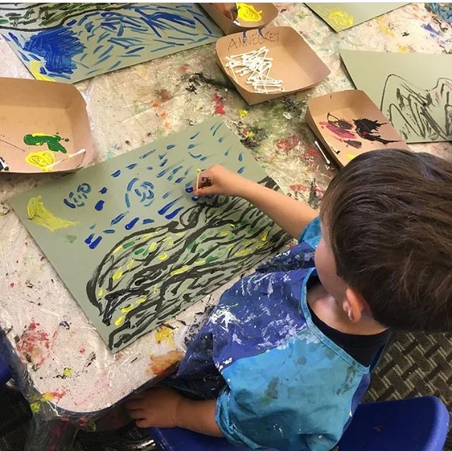Junior Kindergarten took the Art History Time Machine to the year 1889 to visit Vincent Van Gogh, a contemporary of Georges Seurat. They compared both artists’ works, specifically their landscape paintings. They found that instead of dots, Van Gogh preferred to paint with dashed strokes to show movement and expression. Students created their own expressive landscapes, inspired by Van Gogh’s famed Starry Night.