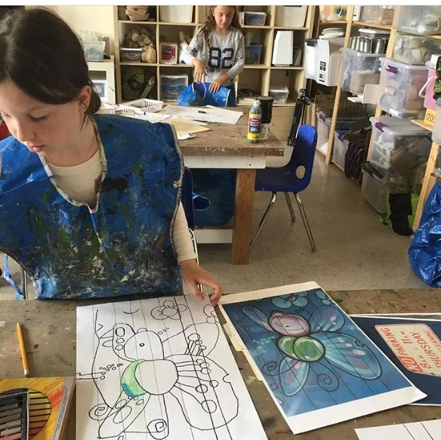 First Grade are learning how to use the grid method on an image reference to execute the correct scale and proportion in their drawing. They first concentrate on the outline, then on adding the different values to create the illusion of a three dimensional shape.